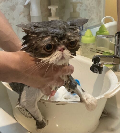 シャンプー中のメルモちゃん。