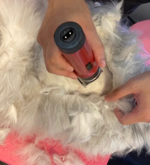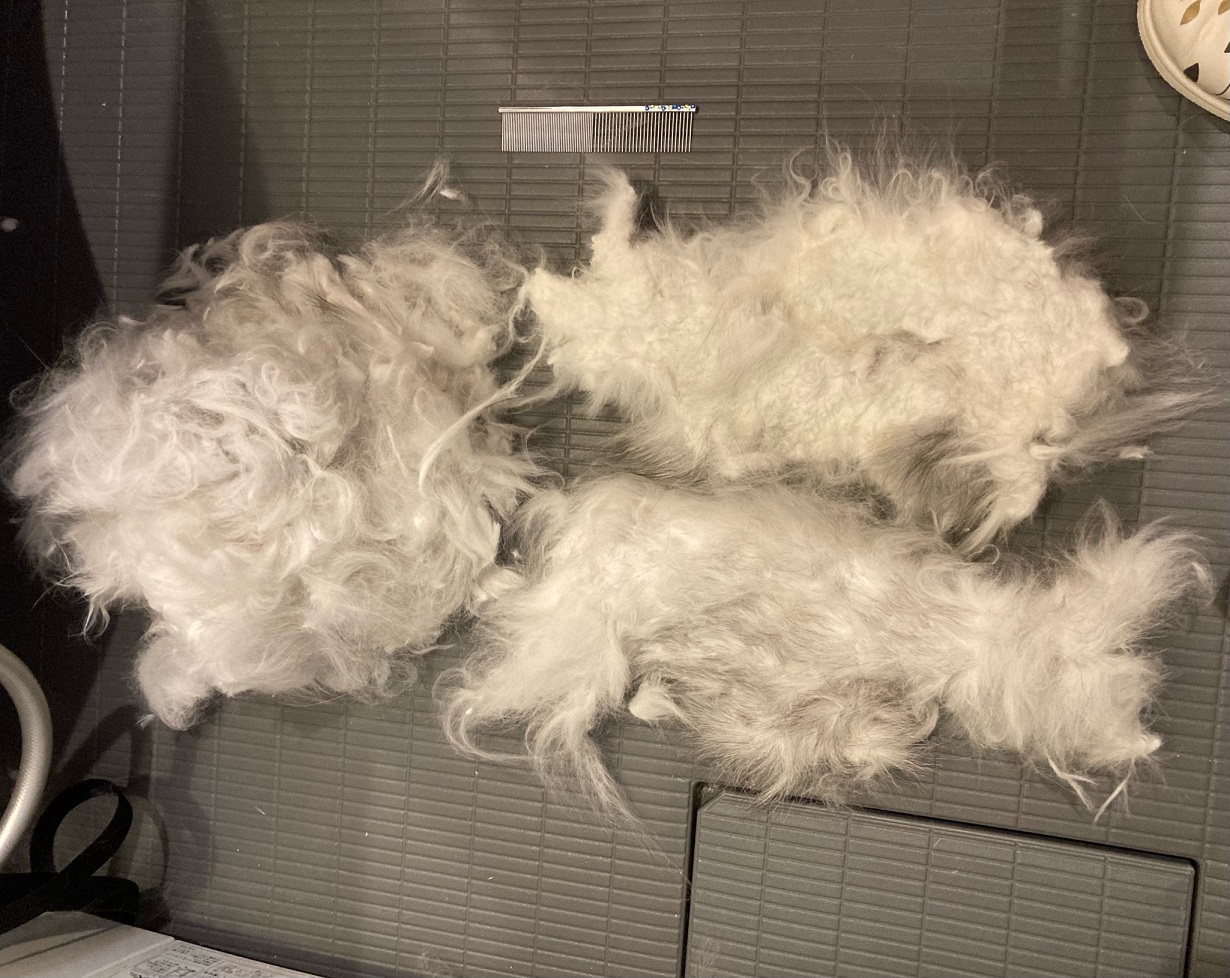 福ちゃんは、幸い、根元から浮いて毛玉になっておりましたので、2㎜のバリカンで仕上げることができます。