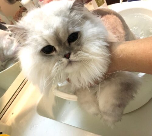シャンプー中の福ちゃん。