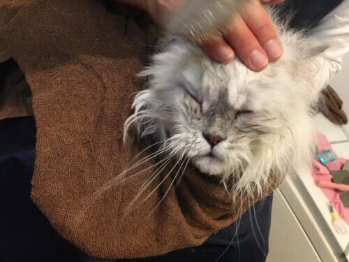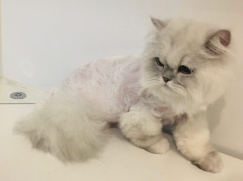 猫ちゃんが我慢できるのが2時間程度ですので、全身バリカンをご了承頂きました。