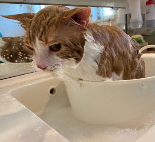 シャンプー中は、大人しいダイリちゃん