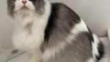 わしづかみにしてるのではありませんよ。ノーズブレイクと呼ばれるペルシャ独特の鼻のしわの中を洗ってるんです。素早く綺麗にしないと「ガブ!」と来る子も居るのですが、ブッチちゃんはされるがまま。