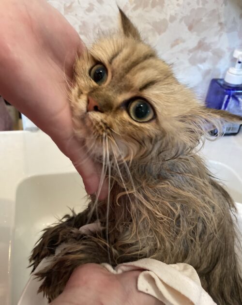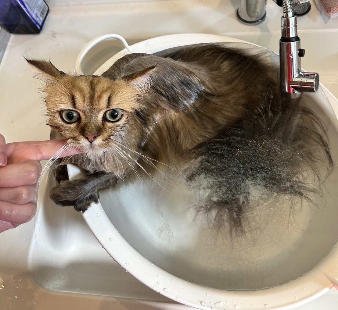 さて、シャンプー中はとてもおとなしいりりちゃん。