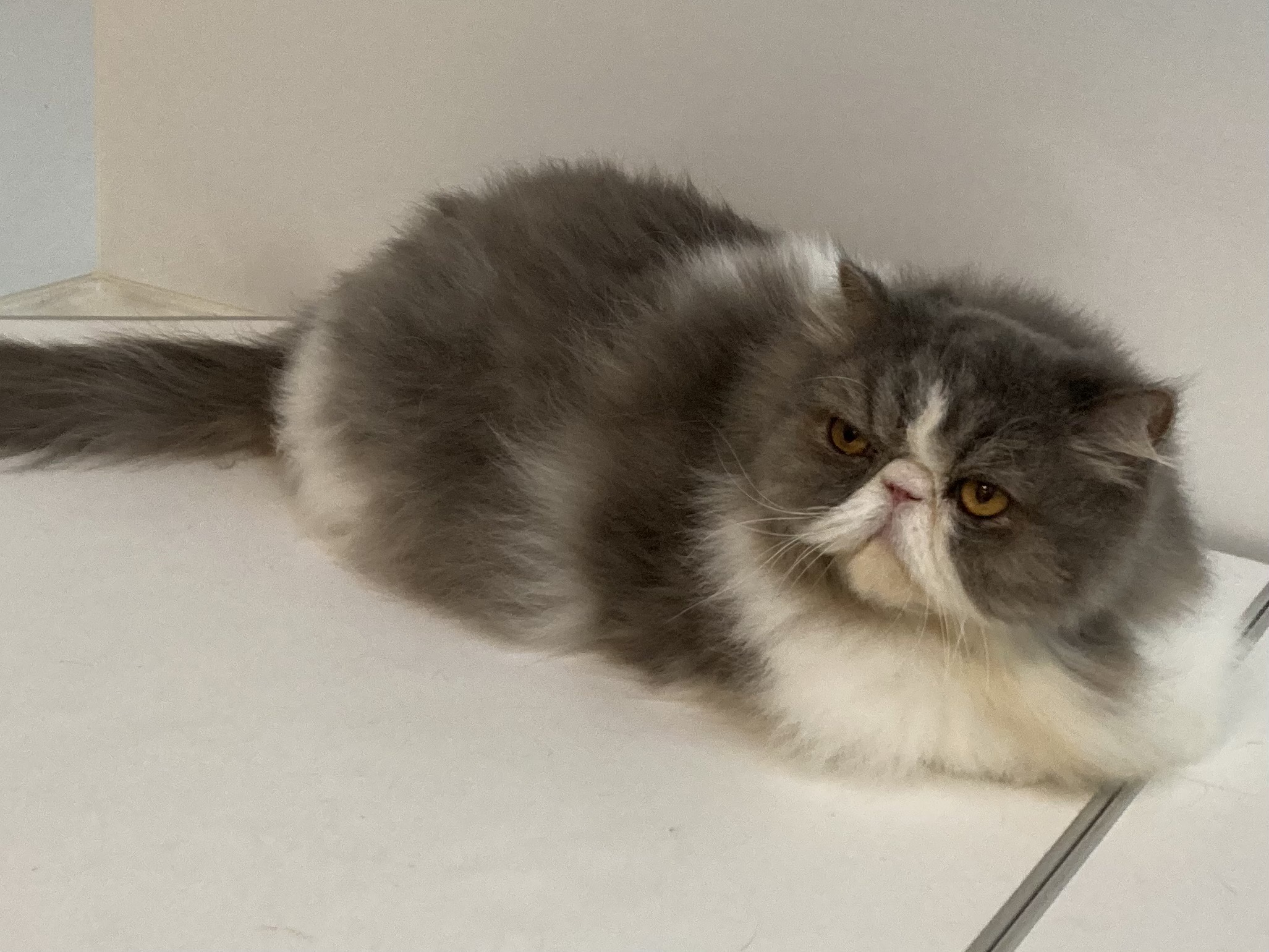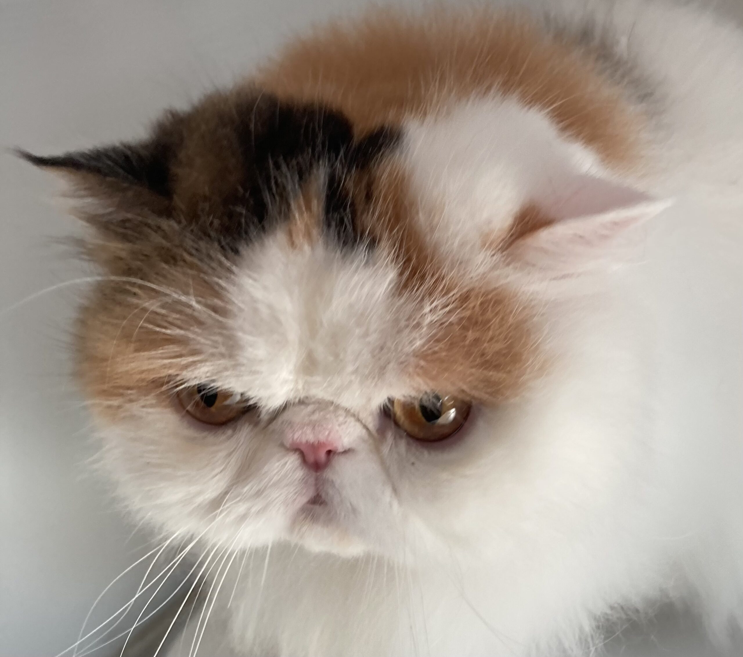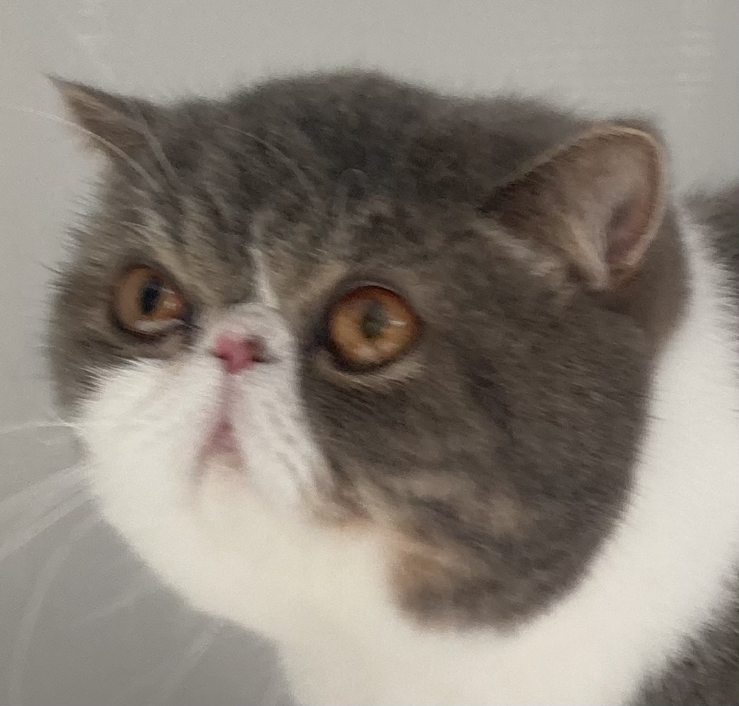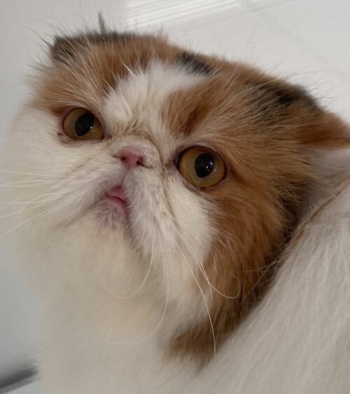 いつもにらまれてるので、今回は目の上をカットしておめめぱっちりにしました。