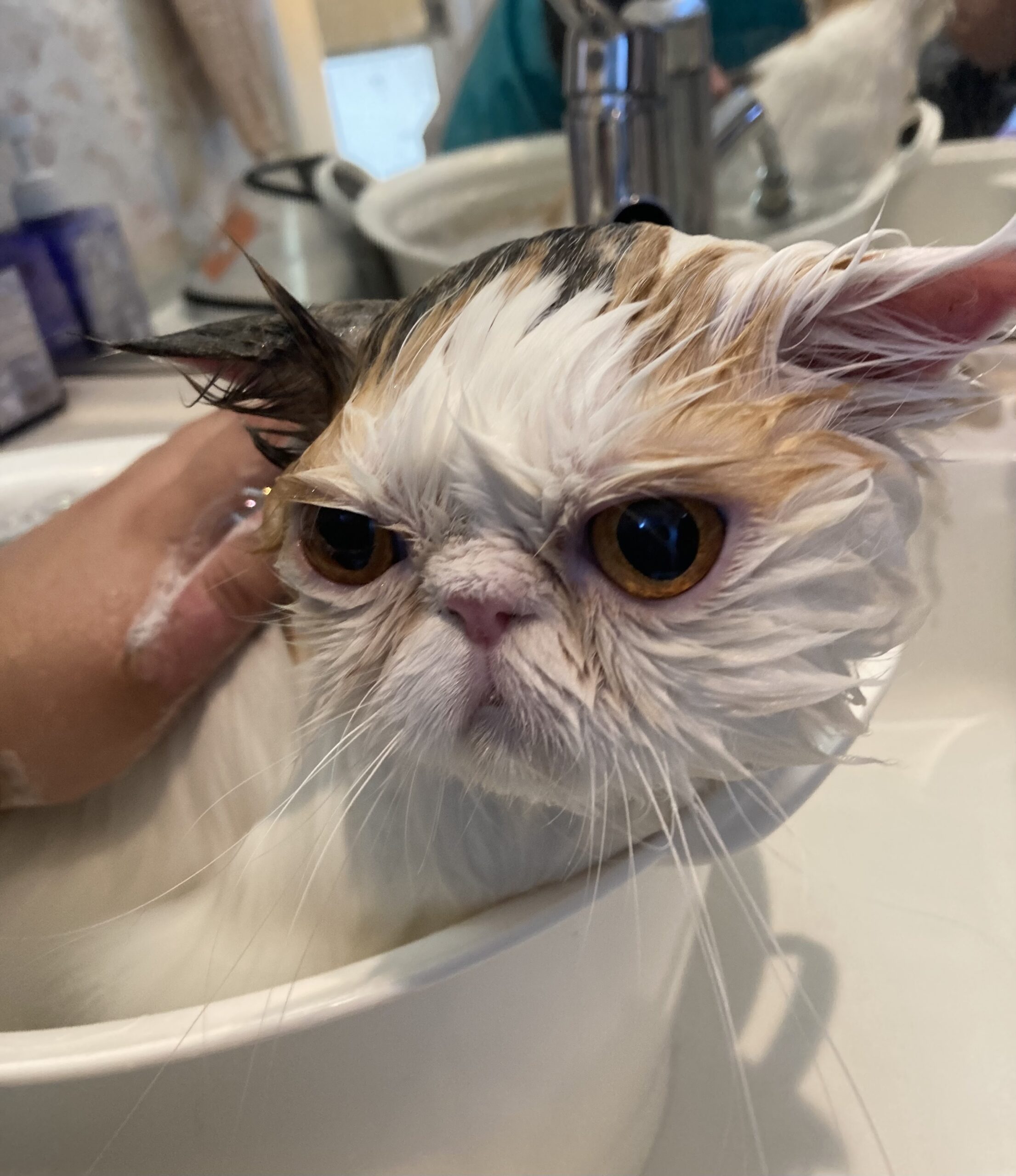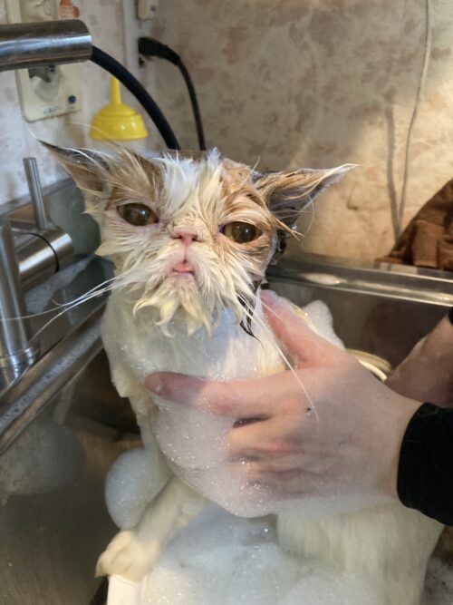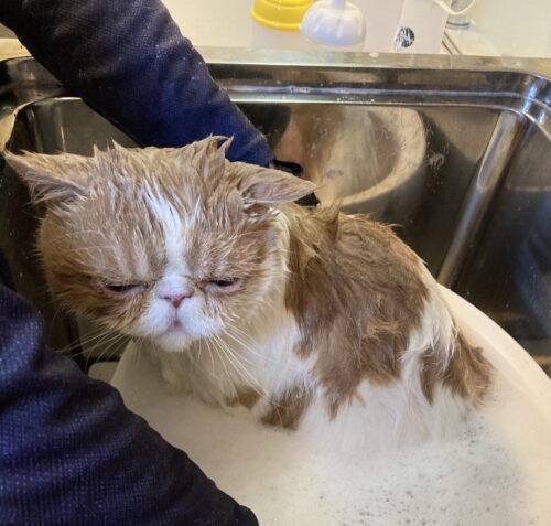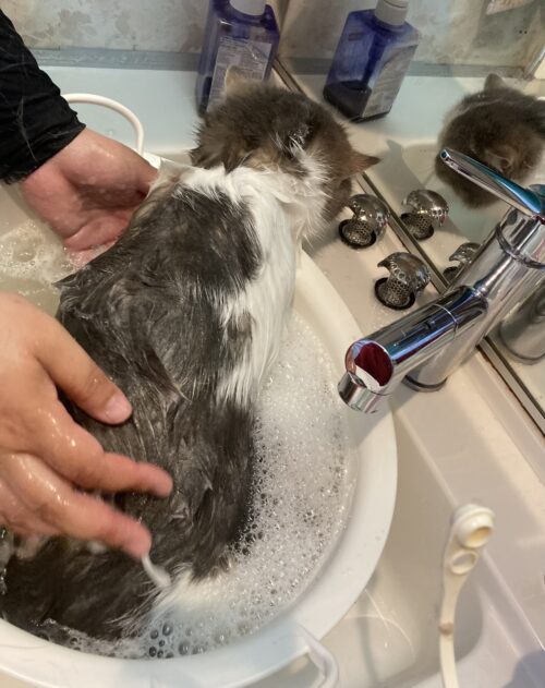 シャンプー中は、とてもおとなしいルーナちゃん。